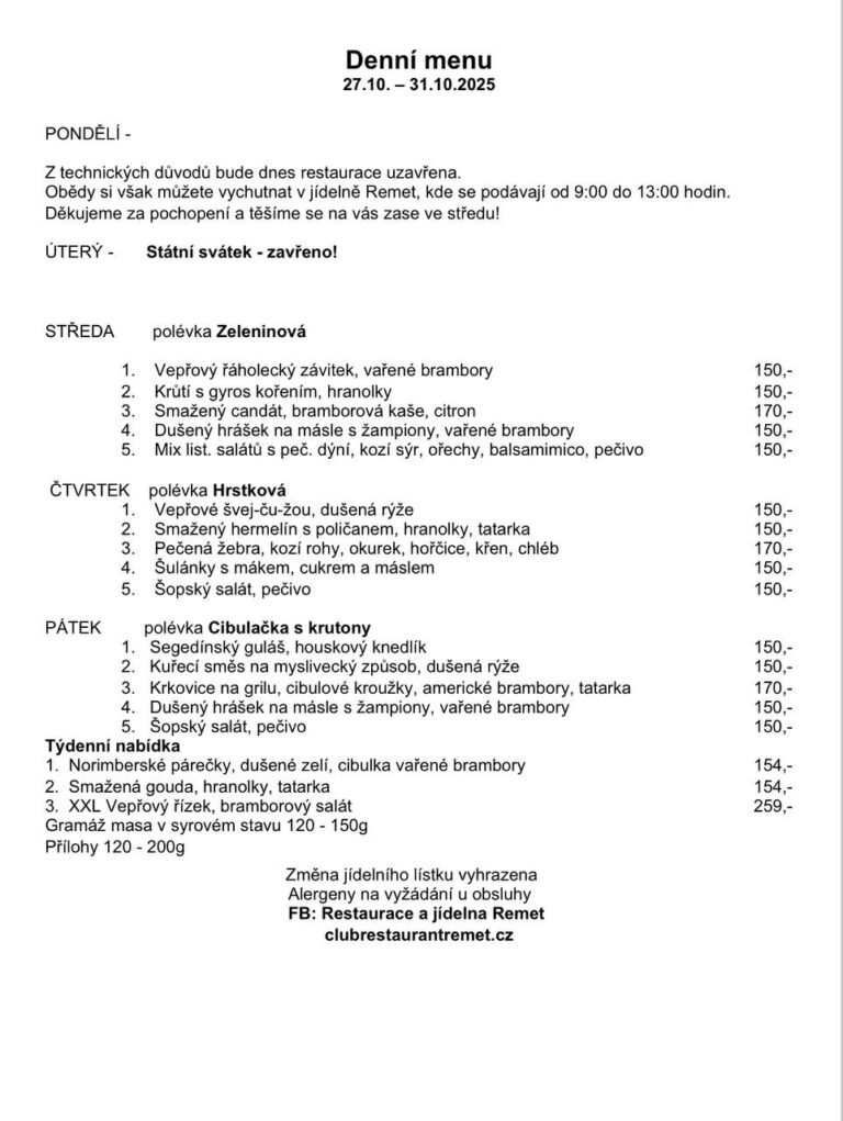 Každý den pro vás připravujeme nové polední menu s nabídkou tradiční české i zahraniční kuchyně. Na výběr máte z 5 jídel, včetně čerstvého salátu nebo vegetariánského chodu. Ideální volba pro rychlý a chutný oběd během vaší pauzy. Těšíme se na vaši návštěvu!
